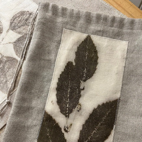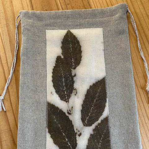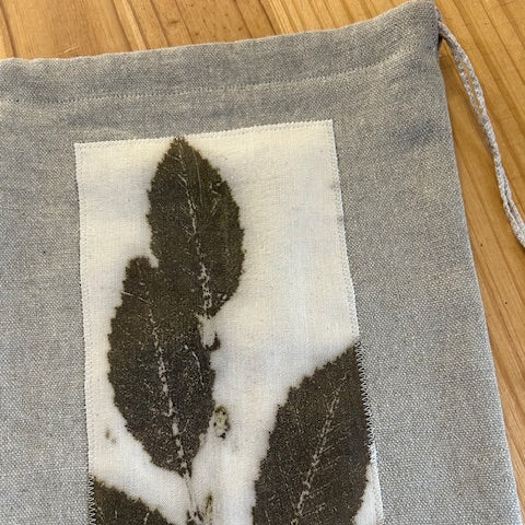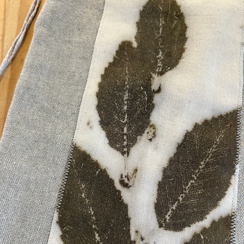 Pochette en lin naturel et impressions végétales de feuilles de charme.