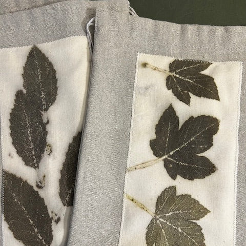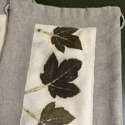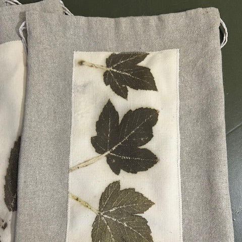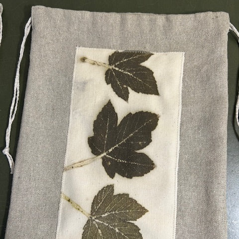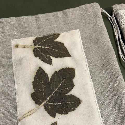 Pochette en lin naturel et impressions végétales de feuilles d'érables.
